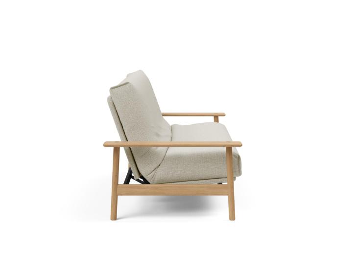 Balder 140 strahlt Ruhe und Geborgenheit aus. Die klaren Linien und die warmen Armlehnen aus massivem Eichenholz verleihen ihm eine natürliche Präsenz, die jedem Raum ein Gefühl von Zuhause schenkt. Das Rückenteil des Sofabetts lässt sich in drei Positionen verstellen: aufrecht zum Sitzen, entspannt zurückgelehnt oder flach zum Schlafen. In der Bettfunktion kannst du das Kopfteil sogar stufenlos bis zu 70° neigen.